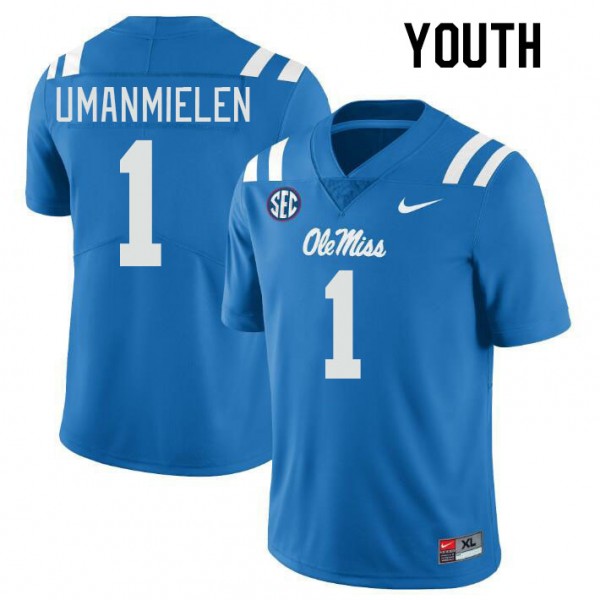 #1 Ole Miss Collectible Youth Princely Umanmielen Power Blue Player Applique Football Jersey - Authentic Licensed NCAA 69323-880
