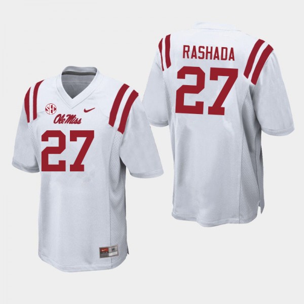 #27 Rebels On-Field Men Roman Rashada White NCAA Chain-Stitched Football Jersey - Authentic Licensed NCAA 84755-562