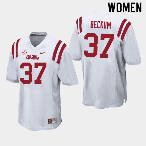 #37 Ole Miss Rebels Subtle Women's DJ Beckum White College Double-Stitched Football Jersey - Authentic Licensed NCAA 16742-770