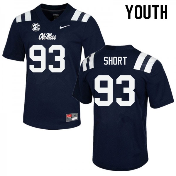 #93 Ole Miss Compliance Certified Youth Carter Short Navy College Breathable Football Jersey - Authentic Licensed NCAA 63127-500