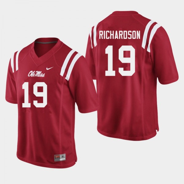 Collectible Men's Jamar Richardson #19 Ole Miss Red Applique NCAA Football Jersey - Premium Licensed NCAA Gear 56098-320
