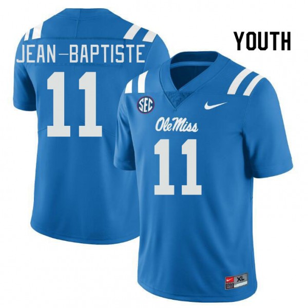 Compliance Certified Kid Jeremiah Jean-Baptiste #11 Ole Miss Power Blue Breathable University Football Jersey - Premium Licensed NCAA Gear 41777-393