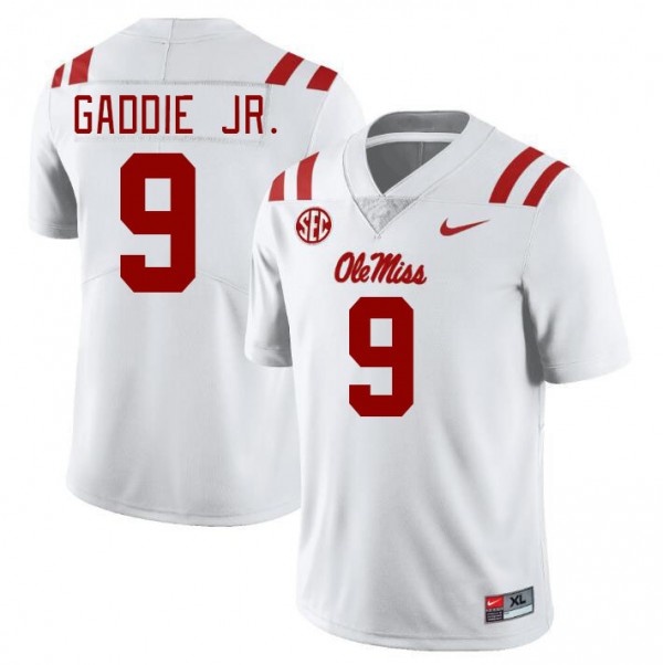Compliance Certified Mens DeShawn Gaddie Jr. #9 Ole Miss White Breathable College Football Jersey - Premium Licensed NCAA Gear 54915-143