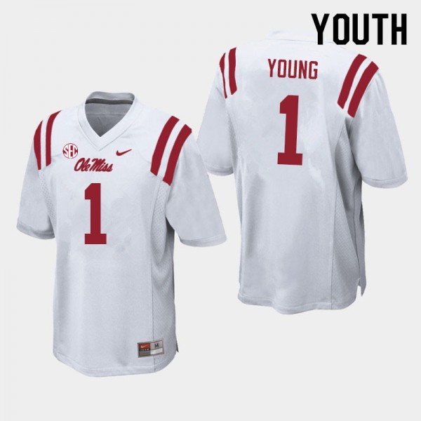 Compliance Certified Youth Isheem Young #1 Ole Miss White Breathable High School Football Jersey - Premium Licensed NCAA Gear 98612-148