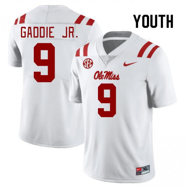 Exclusive DeShawn Gaddie Jr. #9 White Ole Miss Kid Football Breathable Jersey - Official NCAA Licensed Collectible 98628-445