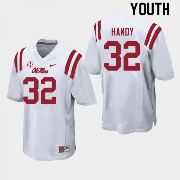 • 1. Own a piece of Ole Miss glory with the Game-Ready Kid Jaden Handy #32 Rebels White College Chain-Stitched Football Jersey - Licensed Elite 76704-125! As the Rebels' star, Jaden Handy embodies the fierce spirit of NCAA football. This isn't just apparel, it's your ticket to Vaught-Hemingway Stadium's electric atmosphere. Stand out from generic jerseys and rep the true Rebel blue.