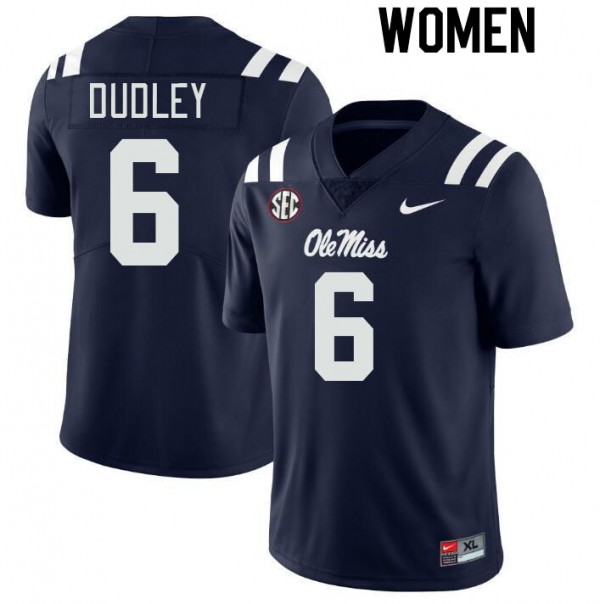 Game-Ready Women's TJ Dudley #6 Rebels Navy University Long-Lasting Football Jersey - Licensed Elite 99322-740