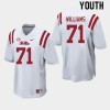 • 1. Rule game day in the Game-Ready Youth Jayden Williams #71 Rebels White University Lightweight Football Jersey - Licensed Elite 53165-473! Jayden Williams's Rebel journey fuels NCAA dreams, and this authentic piece outshines generic rivals. Wear the passion of Oxford's fields.