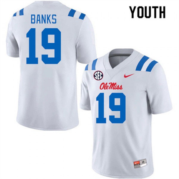 Iconic Kids Travaris Banks #19 Rebels White Long-Lasting High School Football Jersey - Premium Licensed NCAA Gear 51959-723