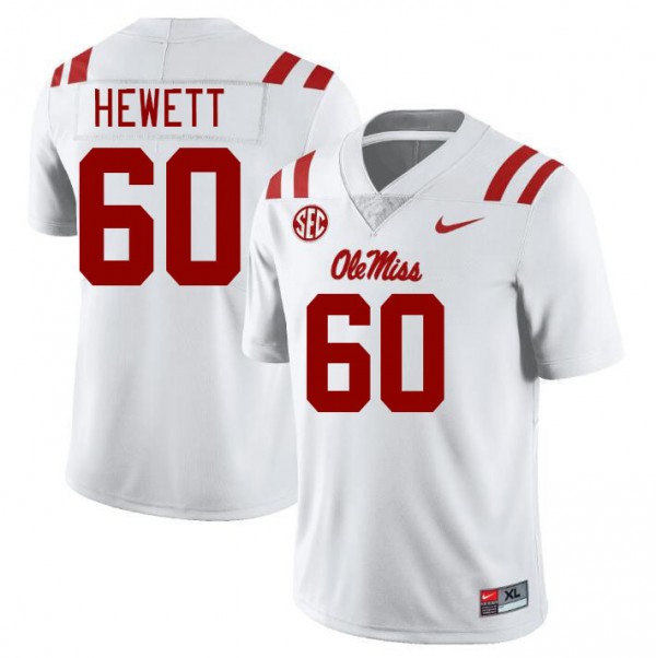 Iconic Men Lane Hewett #60 Rebels White Long-Lasting High School Football Jersey - Premium Licensed NCAA Gear 13324-949