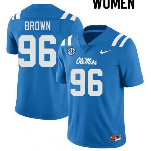 • 1. Embrace Ole Miss legend in the Iconic Women's Jamarious Brown #96 Rebels Powder Blue Long-Lasting High School Football Jersey - Premium Licensed NCAA Gear 74279-578! Jamarious Brown's prowess as Rebels' player makes this NCAA must-have. Forget cookie-cutter sites; this gear echoes Vaught-Hemingway's roars and Southern soul.