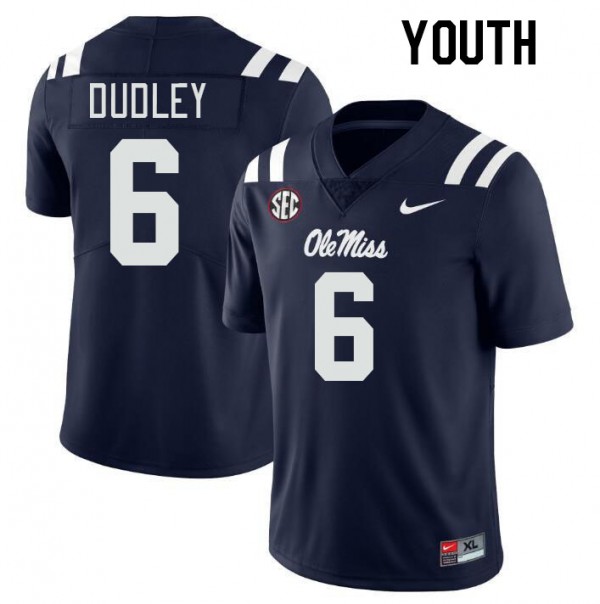 Kids Team-Issued Ole Miss Rebels #6 TJ Dudley Navy Microfiber Player Football Jersey 20636-211