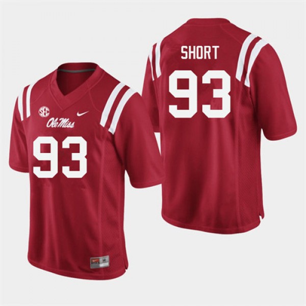 Mens #93 Carter Short Ole Miss Red College Applique Football Jersey - Authentic NCAA 55151-254