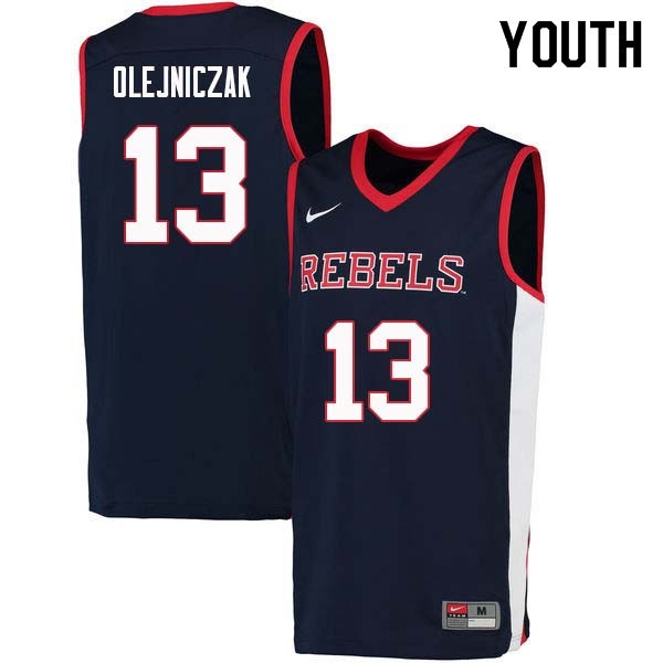 Navy Double-Stitched High School Basketball Jersey - Kid Dominik Olejniczak #13 Ole Miss Rebels Subtle (Licensed Official) 32566-722