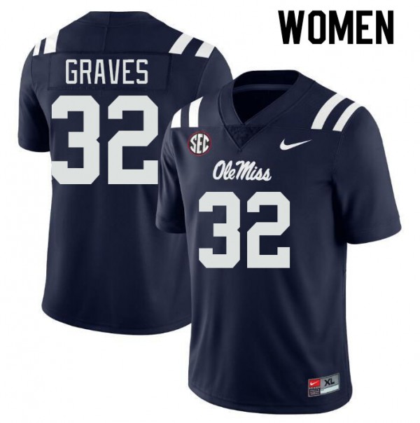• 1. Dominate in Navy Out Essential Womens Chris Graves Rebels #32 Long-Lasting University Football Jersey 11683-858! As Rebels QB, Chris Graves defines NCAA excitement. This gear offers unique Ole Miss soul, not found elsewhere.