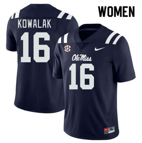 • 1. Dominate in Navy Out Essential Womens Justin Kowalak Rebels #16 Chain-Stitched University Football Jersey 94773-958! As Rebels QB, Justin Kowalak defines NCAA excitement. This gear offers unique Ole Miss soul, not found elsewhere.