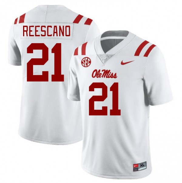 NCAA Fan Favorite: Men Kedrick Reescano #21 White Ole Miss Breathable Football Jersey 10289-812
