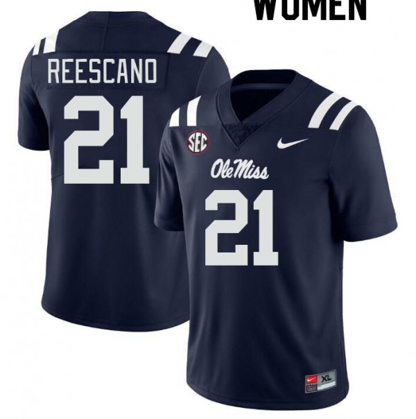 NCAA Fan Favorite: Women Kedrick Reescano #21 Navy Ole Miss Rebels Double-Stitched Football Jersey 57998-678