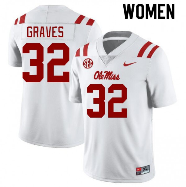 • 3. Relish NCAA moments, this NCAA Fan Favorite: Womens Chris Graves #32 White Rebels Chain-Stitched Football Jersey 31488-364 channels Vaught-Hemingway's energy and Chris Graves's leadership. Fans wear it as a tribute to Rebel spirit.