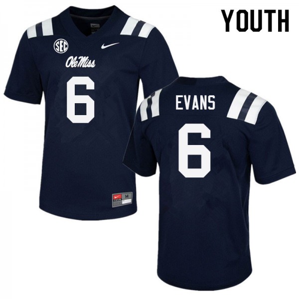 On-Field Navy Kid Football Zach Evans #6 Rebels High School Chain-Stitched Jersey 46430-237