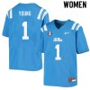 On-Field Womens Isheem Young #1 Rebels Power Blue Chain-Stitched College Football Jersey - Premium Licensed NCAA Gear 23837-184