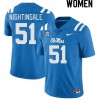 Powder Blue Anti-Odor College Football Jersey - Womens Trey Nightingale #51 Ole Miss Rebels Unused (Licensed Official) 72634-872