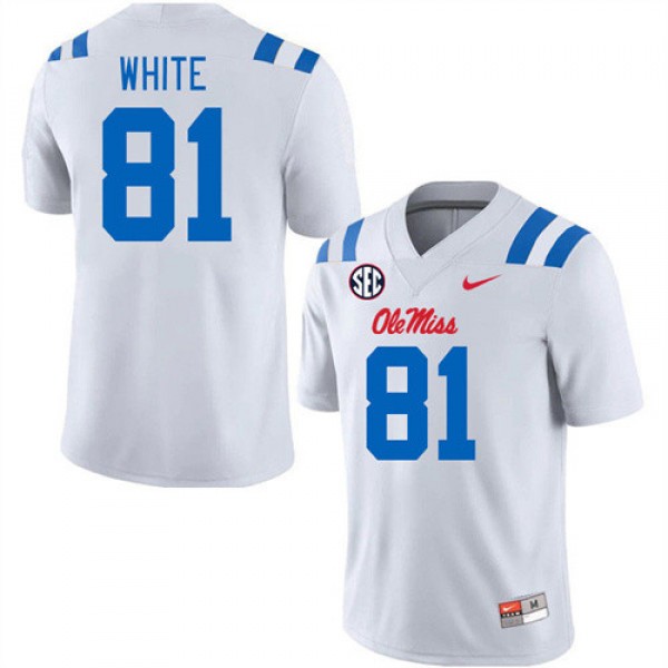 • 2. Featuring lightweight mesh and vibrant team colors, the Subtle Men's Official Noreel White #81 Ole Miss Rebels White Football Player Double-Stitched Jersey 14052-766 boasts Noreel White's #81 with reinforced stitching. Anti-shrink technology keeps it pristine through seasons. It's more than fabric, it's Ole Miss resilience.