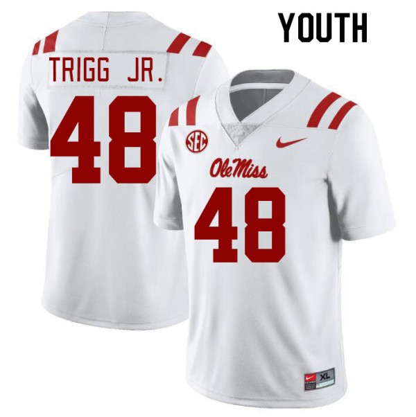 Team-Issued Youth Mark Trigg Jr. #48 Ole Miss Rebels White Microfiber Player Football Jersey - Premium Licensed NCAA Gear 91423-144