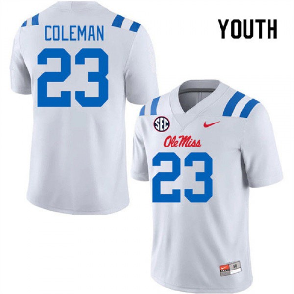 Team-Specific Kid Khari Coleman #23 Ole Miss White Athletic-Fit Player Football Jersey - Premium Licensed NCAA Gear 85937-763