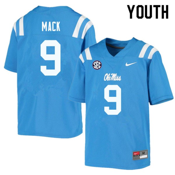 Team-Specific Kid Official Brandon Mack #9 Ole Miss Powder Blue Football Player Athletic-Fit Jersey 83102-115