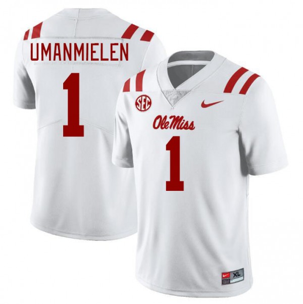 • 1. Rule game day in the White Out Essential Mens Princely Umanmielen Rebels #1 Chain-Stitched University Football Jersey 92818-775! Princely Umanmielen's Rebel journey fuels NCAA dreams, and this authentic piece outshines generic rivals. Wear the passion of Oxford's fields.