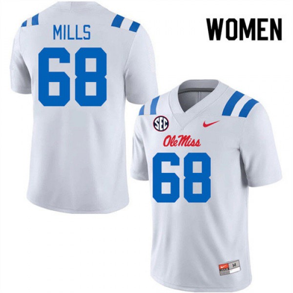 Women's #68 Jack Mills Ole Miss White College Athletic-Fit Football Jersey - Authentic NCAA 93926-166
