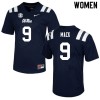 Women's #9 Brandon Mack Rebels Navy College Long-Lasting Football Jersey - Authentic NCAA 32184-409