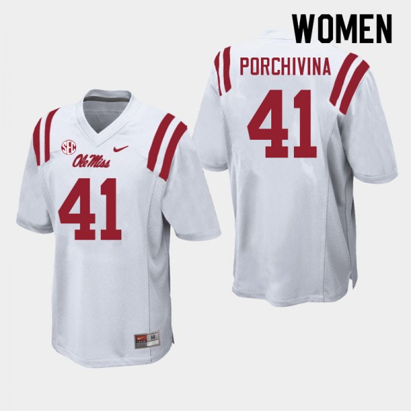 • 1. Command attention in Women's Team-Issued Ole Miss Rebels #41 John Porchivina White Microfiber NCAA Football Jersey 25879-757! John Porchivina's NCAA brilliance makes this essential. Escape generic sites; this gear radiates Rebel history.
