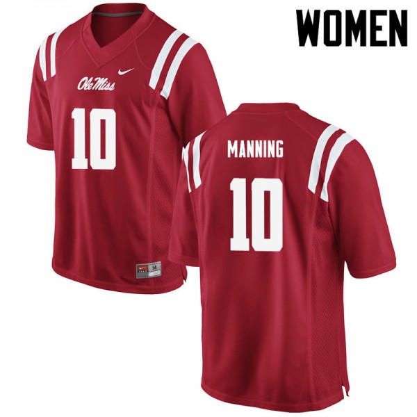 Women Unused Ole Miss Rebels #10 Eli Manning Red Anti-Odor High School Football Jersey 15532-431