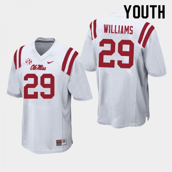 Youth #29 Demarko Williams Ole Miss Rebels White Player Double-Stitched Football Jersey - Authentic NCAA 91424-112