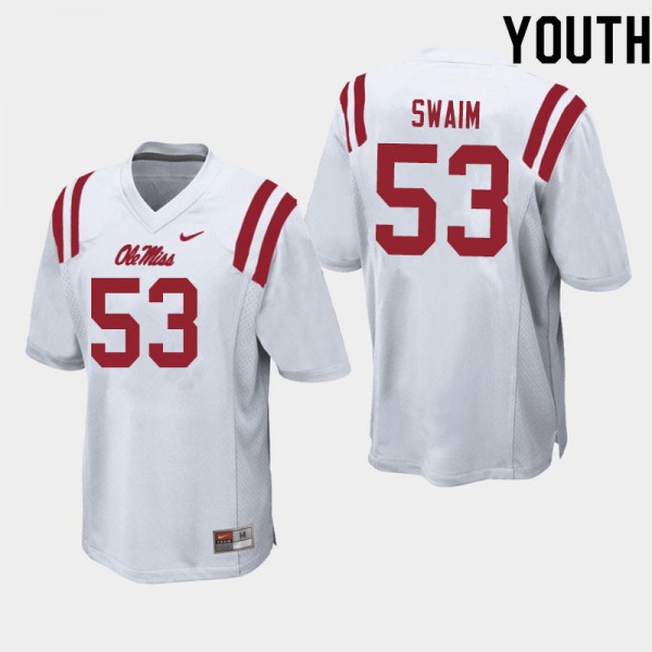Youth Team-Issued Ole Miss Rebels #53 KC Swaim White Microfiber University Football Jersey 19549-159